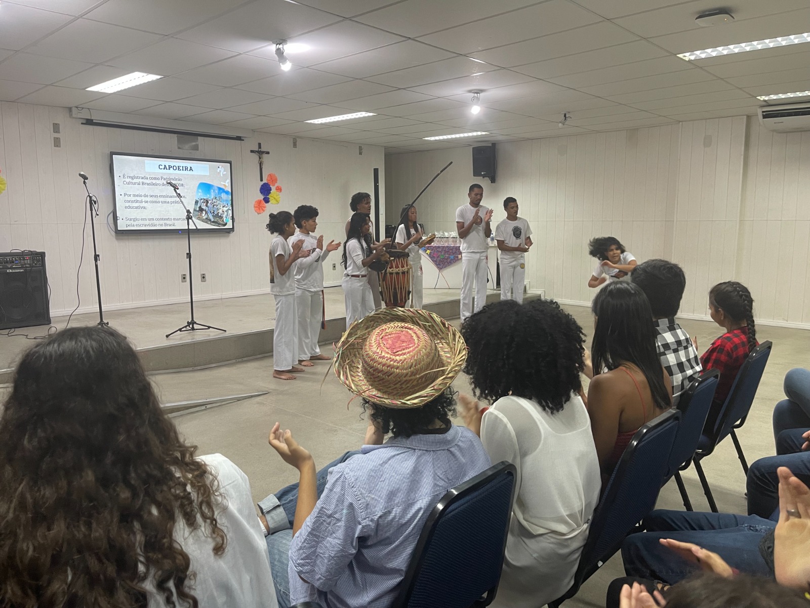 Com apresentações de capoeira, quadrilha junina e musical, alunos da Aprendizagem do Senac/SE apresentaram o Projeto Integrador “Uma viagem à cultura sergipana”. O evento aconteceu na tarde do dia 21, no auditório José Hilton Ribeiro, na unidade do Senac em Aracaju, que recebeu, inclusive, decoração junina.