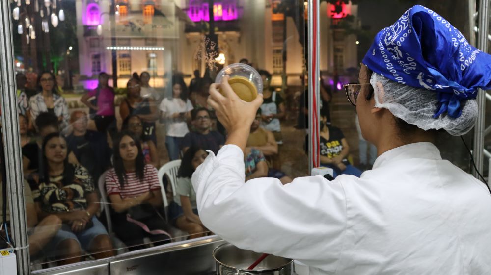 Com a aula show do brigadeiro de mangaba caramelizado, conduzida pelo talento do Senac Sergipe, Alice Rocha, a escola de educação profissional encerrou a participação na Semana da Sergipanidade. Realizada no Espaço Cozinha Show do Senac, montado na Praça Fausto Cardoso, a aula atraiu o público no final da tarde de sexta-feira, 25 de outubro, que além de acompanhar o preparo, pôde experimentar o doce.