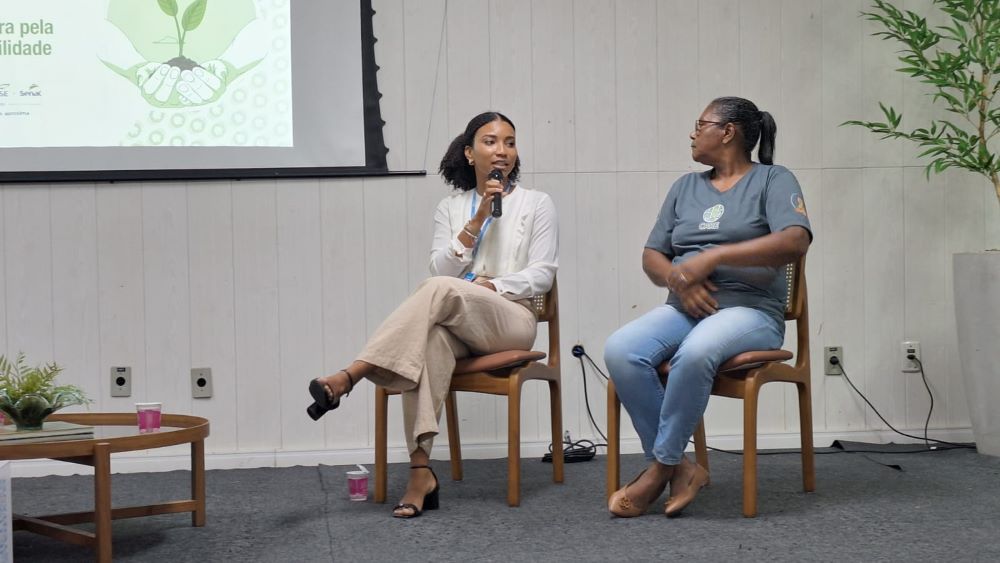 Tendo como mediadora a coordenadora do Programa Ecos, Caroline Teles, foram convidados para participar da mesa redonda, representando a Care, a recicladora Socorro Soares dos Santos; o coordenador de Educação Ambiental da Deso, José Jorge Silva Santos, e a analista Ambiental da Energisa, Mislley Mayara.