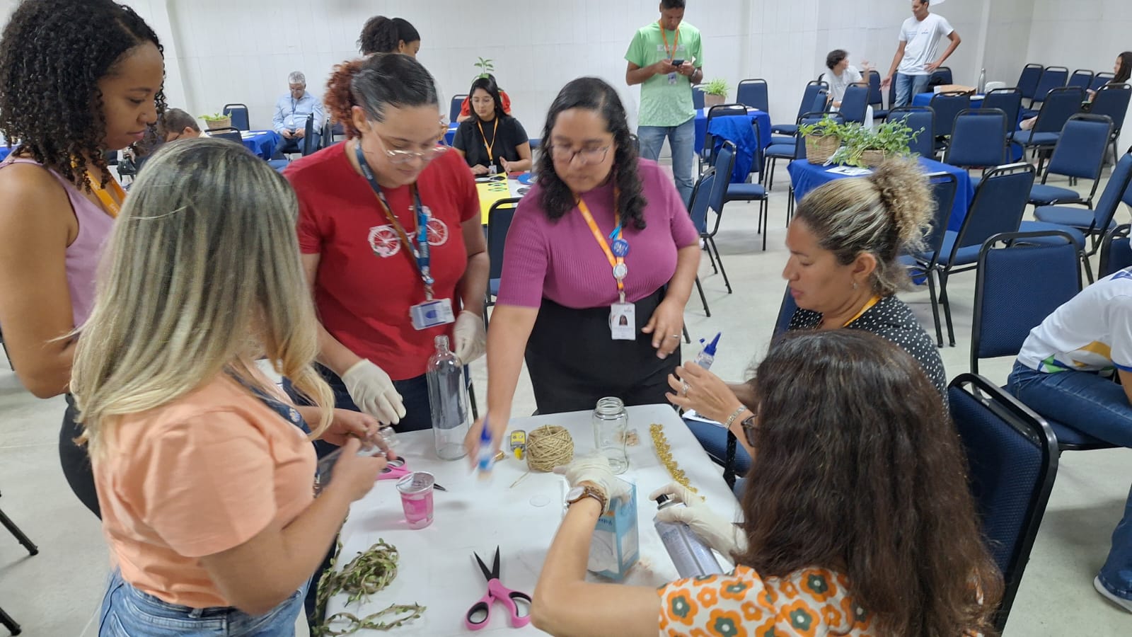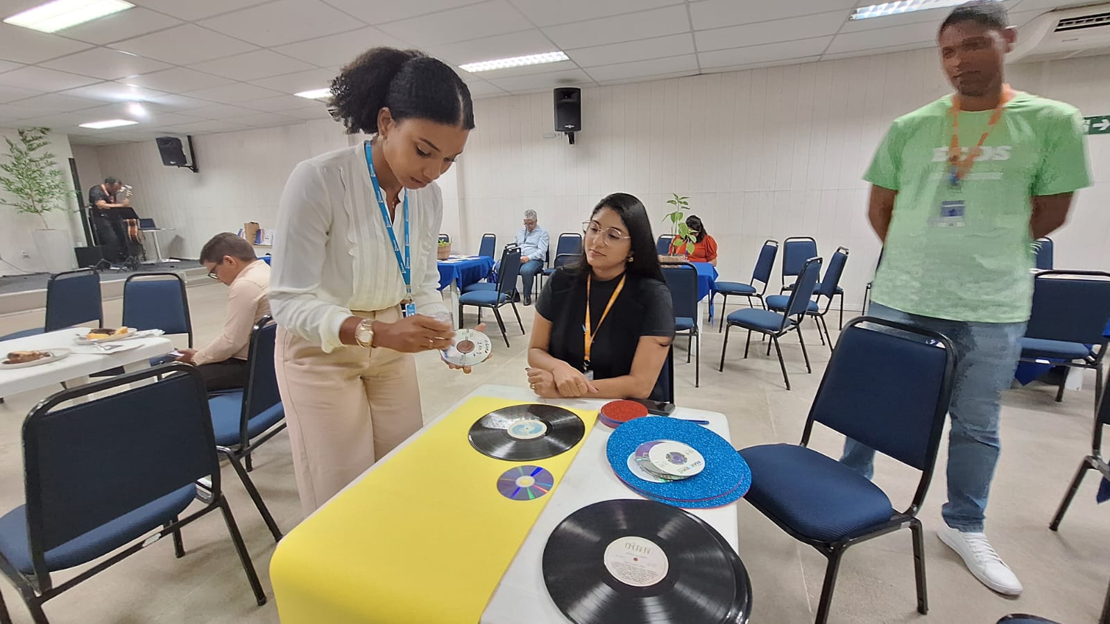 Finalizando a tarde, participantes puderam colocar a mão na massa e produzir artesanatos a partir da reutilização de materiais que seriam descartados, a exemplo de garrafas de vidro, latas, embalagens de leite, CDs e discos de vinil.