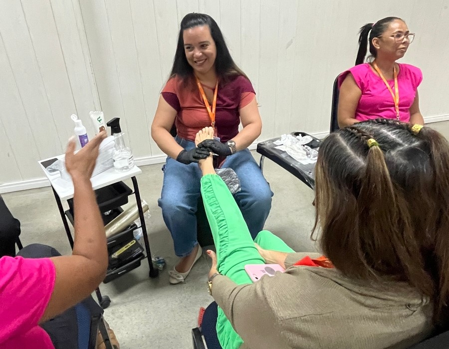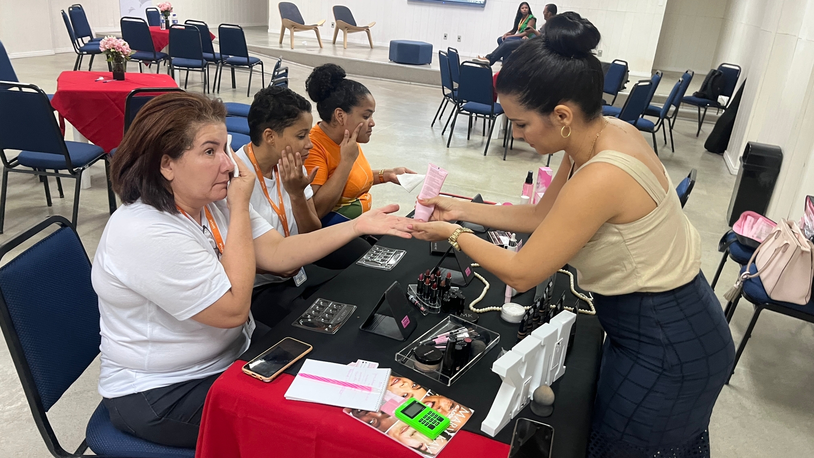 Dando prosseguimento às atividades, foi realizada palestra sobre “Bem-estar dos óleos”, com Renata Carvalho; limpeza de pele com a consultora da Mary Kay, Monika Ávila; maquiagem com o instrutor Roberto Prata e alunos do curso de maquiagem; tranças nagôs com a instrutora Raimunda da Silva; spa dos pés com a instrutora Rosiane Serões; encerrando com karaokê e sorteio de brindes.