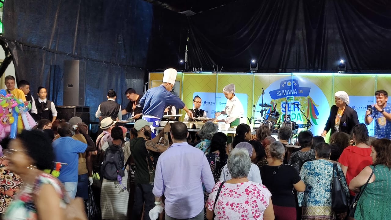 “Este era um dos pratos favoritos de Jenner Augusto, que sempre frequentava o Cacique Chá. Uma receita carregada de sergipanidade. Durante este evento, estaremos valorizando produtos regionais com as aulas shows, inclusive de drinks, preparados com insumos que o sergipano costuma consumir diariamente, produtos simples. Trabalharemos com receitas fáceis e rápidas, utilizando desde frutas à elaboração de pratos quentes”, destacou Samuel Davi, que contou com o auxílio da sub chef Flávia Monteiro, no preparo da iguaria, que foi servida ao público pelos alunos do curso de Garçom, sob o comando da instrutora Evanice Melo.