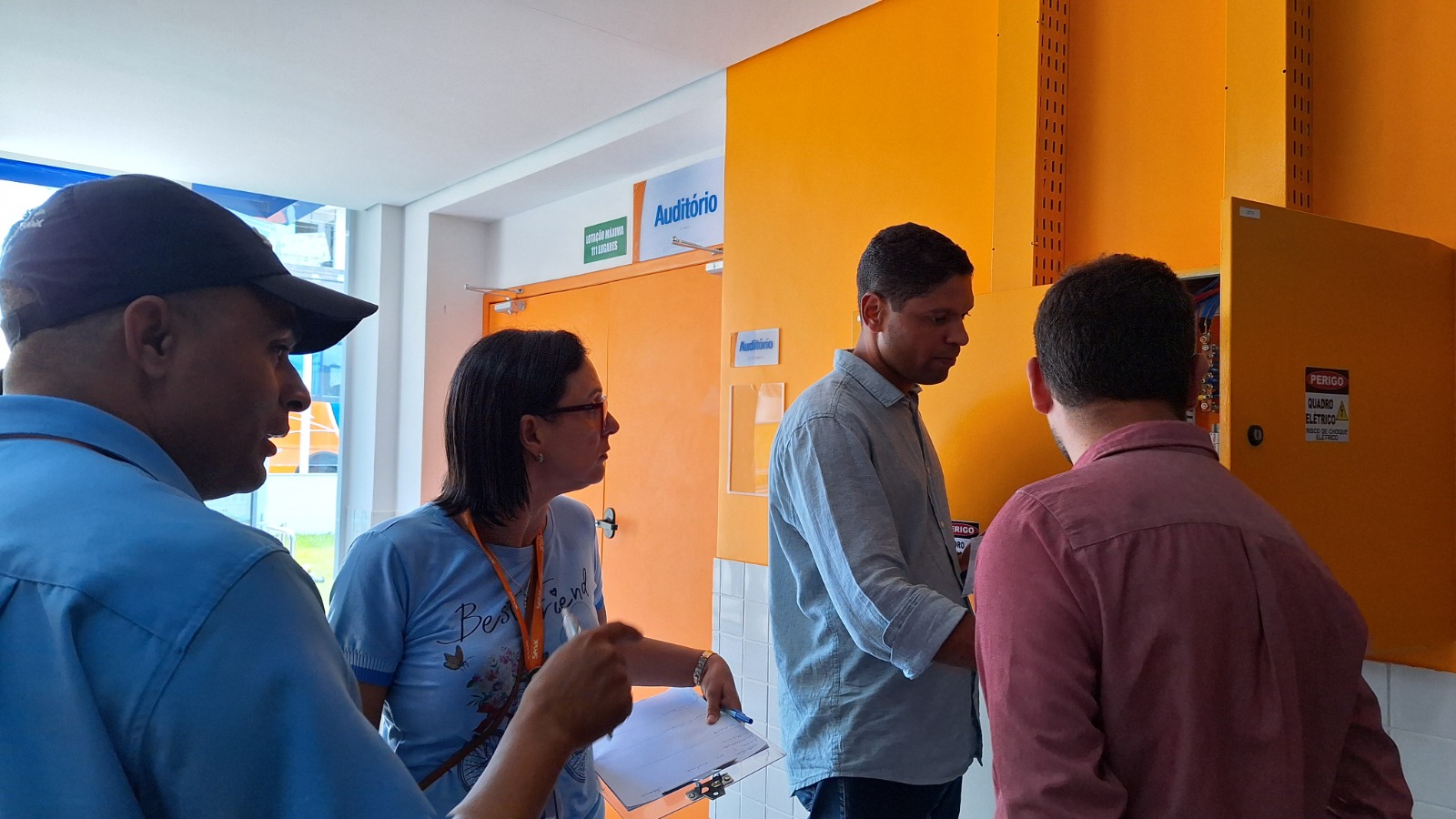 O grupo, formado pelos analistas Alex Sanches e Selma Sobral, pela gerente de Planejamento, Orçamento e Finanças (NPOF), Greice Kelly de Jesus Carvalho e do porteiro da unidade de Itabaiana, Fabiano Alves dos Santos, visitou toda a estrutura (térreo, os três pavimentos superiores, guarita, doca e área externa).