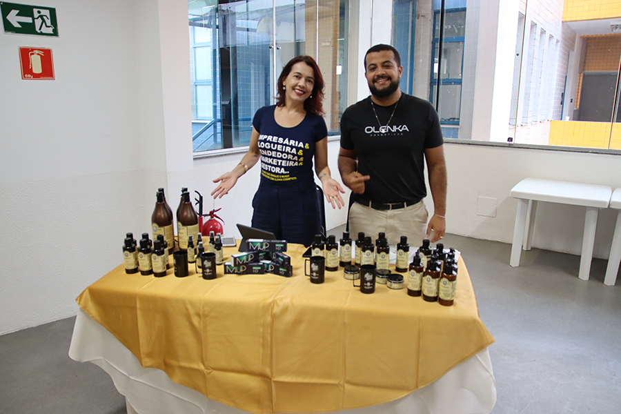 A Hair Aju, distribuidora da Olenka e Matricolor em Sergipe, também expôs seus produtos da linha men’s care. “A Olenka tem uma linha completa focada no público masculino, com tecnologia desenvolvida pela própria empresa e nós trouxemos hoje aqui para que todos possa conhecer”, informou a empresária Laura Colares, parabenizando o Senac/SE pera realização do evento.