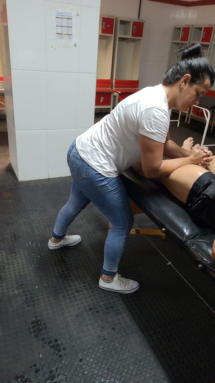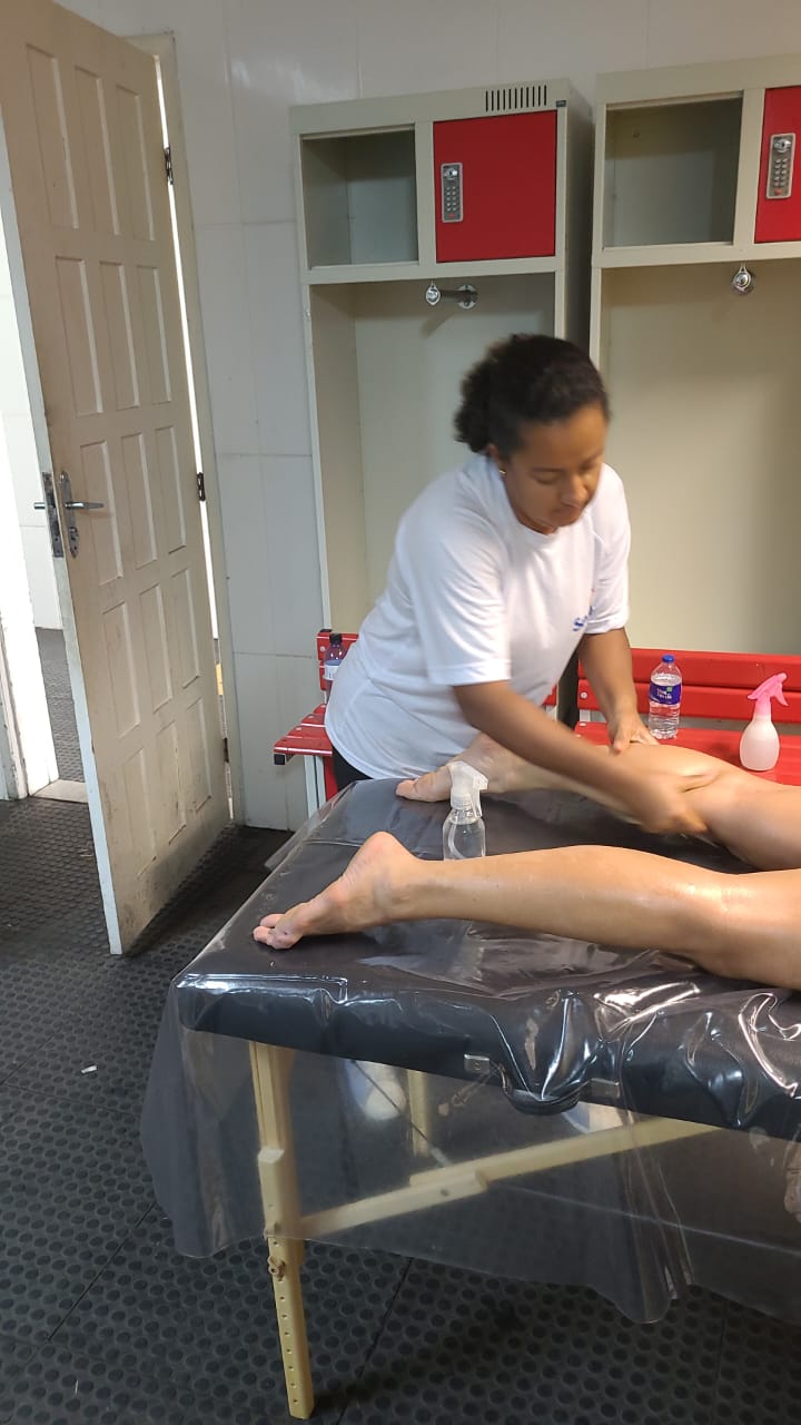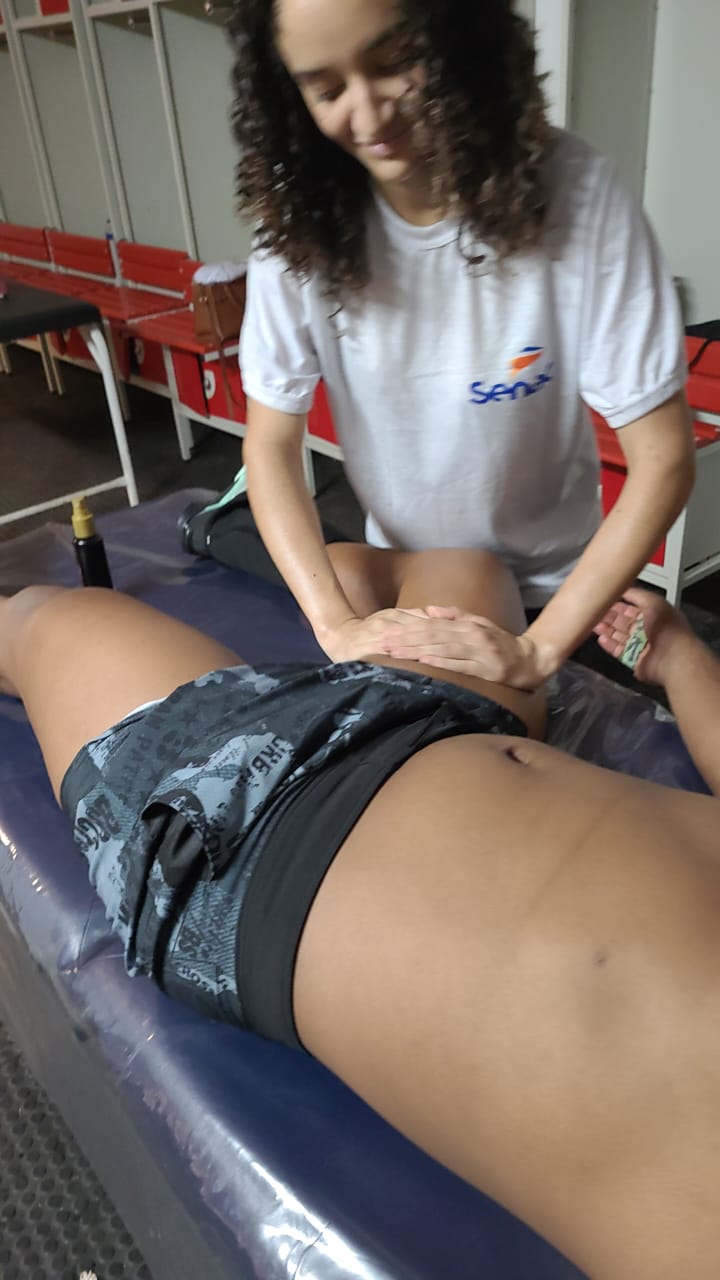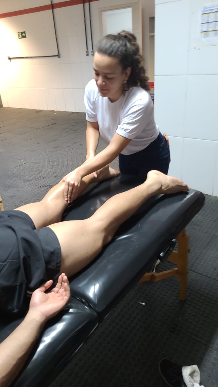 “O nosso apoio na massagem foi divido em três blocos, contando com uma média de quatro a cinco alunos por turnos. Montamos equipes para atender das 7h às 11h, outra das 11h às 15h, e a última das 15h às 19h”.