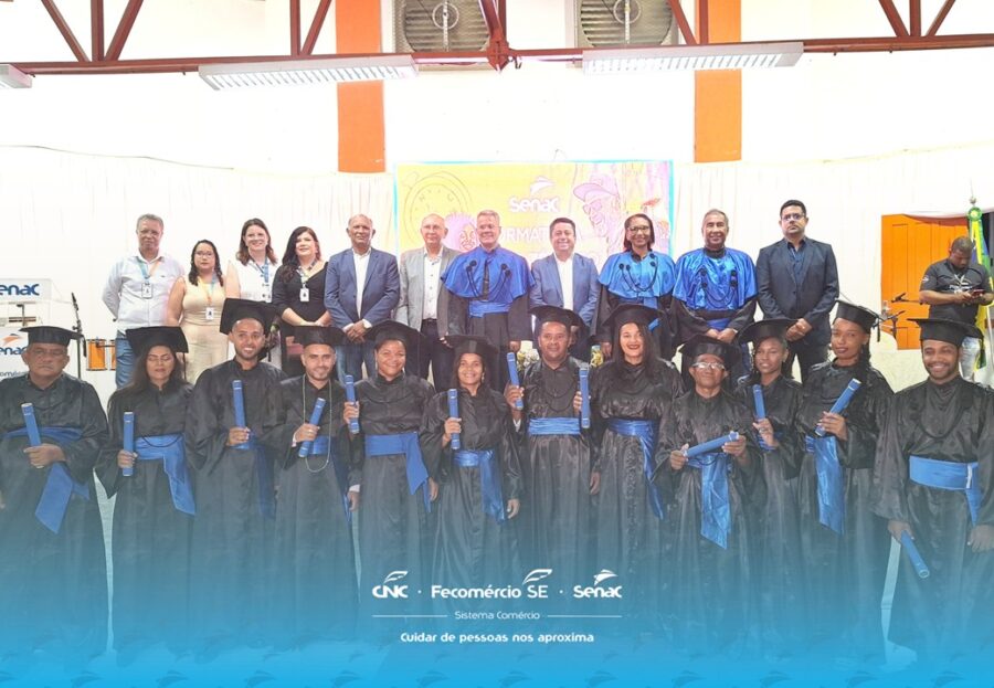 Senac Sergipe formou, no dia 25 de abril, 12 alunos da turma “Resiliência”, do curso Técnico em Guia de Turismo, eixo tecnológico Turismo, Hospitalidade e Lazer, do Centro de Gastronomia e Turismo (CGT), em convênio com a Prefeitura Municipal de Laranjeiras. A abertura da cerimônia foi realizada pelo grupo São Gonçalo do Amarante, em reverência às riquezas da história e da cultura de Laranjeiras.