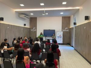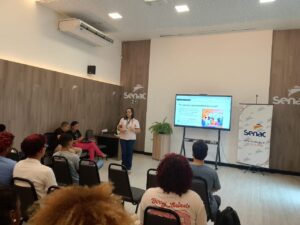 Entre as várias iniciativas destacadas, os alunos conheceram a Rede de Talentos, que atua na conexão entre empresas e ex-alunos do Senac, facilitando o acesso ao mercado de trabalho e ampliando oportunidades de empregabilidade. “É fundamental que nossos alunos se sintam apoiados e compreendam que a instituição está empenhada em ajudá-los na sua trajetória profissional”, complementou Marileide.