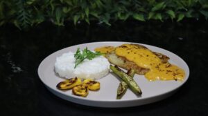 Segundo a chef, o prato ‘Rio Sergipe’ carrega uma forte carga de memória afetiva, inspirada no arroz de coco tradicionalmente preparado em sua família durante a Semana Santa. “O preparo consiste em um peixe branco ao molho veloutée de moqueca levemente apimentado, acompanhado de arroz de coco cremoso, banana-da-terra e quiabo grelhados. Já o ‘La Belle d’Aju’ apresenta um papillote de peixe branco aromatizado com ervas, acompanhado de mix de folhas, tomate-cereja, grão-de-bico com picles de cebola roxa, molho sour cream e crocante de castanha artesanal”, completa.