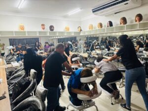 A programação também contou com sessões de ginástica laboral , promovendo a movimentação corporal e prevenindo desconfortos musculares, além de uma Quick-Massage voltada ao relaxamento e à melhoria do bem-estar físico e emocional dos profissionais.